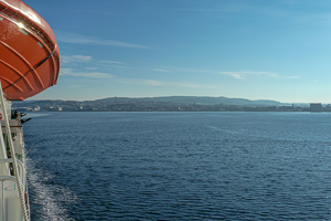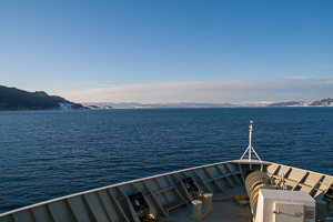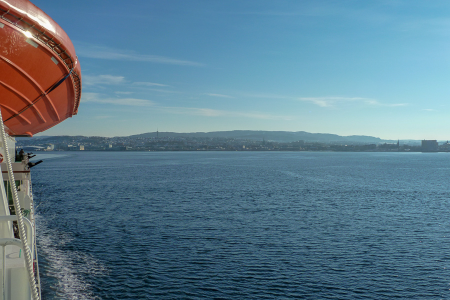 Nächster Halt: Rørvik. Die Reise von Trondheim nach Rørvik geht durch Norwegens drittgrößten Fjord, dann an der Küste Lang und schließlich über das offene Meer zur Inselgruppe Vikna. Noch in der Bucht von Trondheim passieren wir die kleine Insel Munkholmen. Heute eine im Sommer beliebte Badeinsel war sie früher Hinrichtungsstätte, Kloster, Festung, Gefängnis und deutsche Verteidigungsanlage im zweiten Weltkrieg. Sehr bewegte Geschichte für so ein kleines Stück Land.