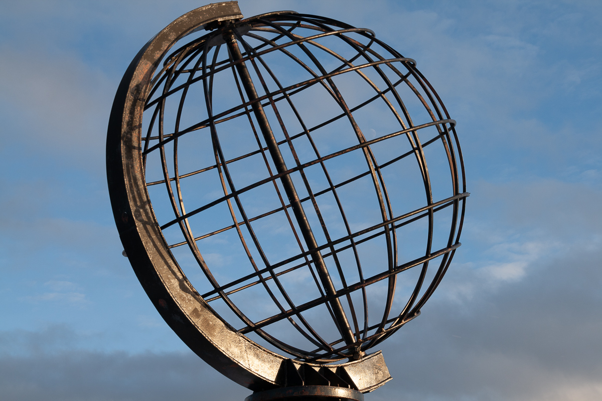 Am Kap angekommen rennt natürlich alles zuerst zur Kugel. Ich mit eingeschlossen. Was für ein erhebender Moment. Der nördlichste Punkt Europas. Nun, nicht ganz. Der liegt etwas weiter links auf einem Felsvorsprung, der aber nicht so gut begehbar ist wie das Plateau, auf dem wir und die Kugel uns befinden. Das Besucher-zentrum darf natürlich auch nicht vergessen werden.