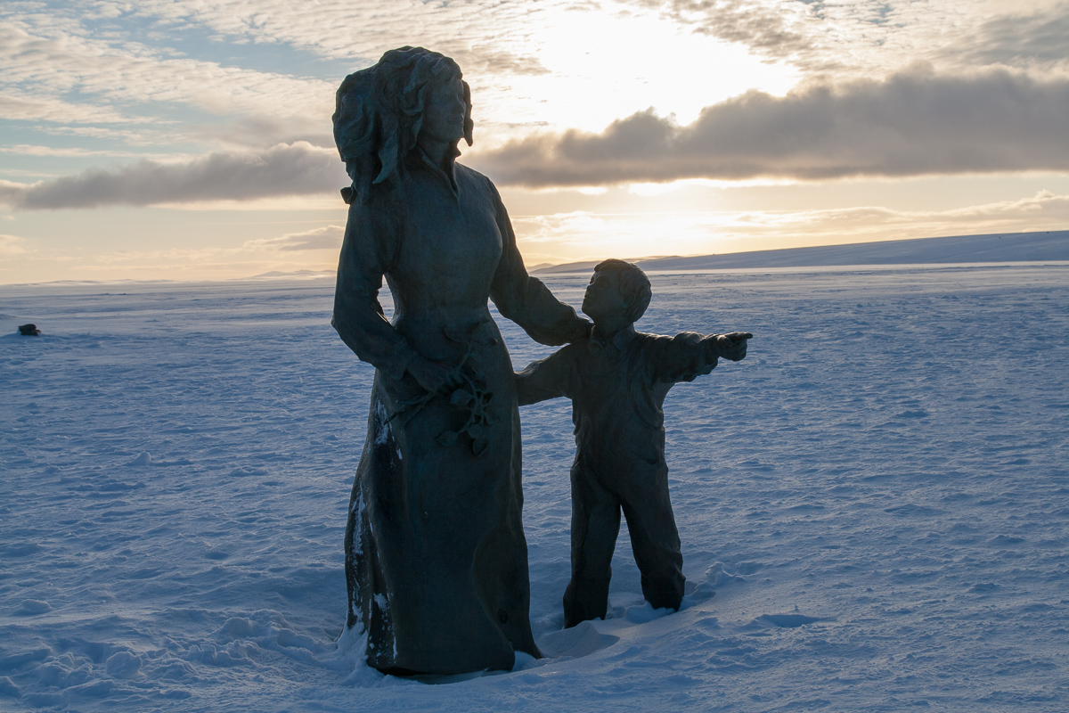 Nach dem langen Bericht von gestern werde ich mich heute einmal richtig kurz fassen. Der Tag verlief ereignislos. Ganz ereignislos? Nein, nicht ganz ereignislos. Ein kleines Dorf im nördlichen Norwegen, und damit meine ich das wirklich nördliche Norwegen, leistet aufkommender Langeweile erfolgreich Widerstand. Das Dorf heißt Honningsvåg und wird Honningsvog gesprochen, was Honigsbucht bedeutet. Es liegt auf der Insel Magerøya (gesprochen: Mageröia = Magere/Karge Insel) und ist Ausgangspunkt der bei allen Touristen begehrten Reise zum Nordkap. Zum Glück begehrt. Im Winter ist nämlich die Zufahrt zum Nordkap gesperrt. Wenn aber Hurtigruten drei vollbesetzte Busse dort hin schickt und sich ein weiterer Reiseveranstalter mit zwei Bussen beteiligt, wird die Schranke geöffnet und ein Konvoi aus Schneepflug und Bussen zusammengestellt. Die Busse müssen dann auf einer abenteuerlichen aber wirklich sehenswerten Strecke in Kolonne hinter dem Pflug herfahren. Was für eine Landschaft! Die Fahrt dauert ca. 40 Minuten, geht aber recht zügig von statten. Hier fährt eben alles mit Spikes.