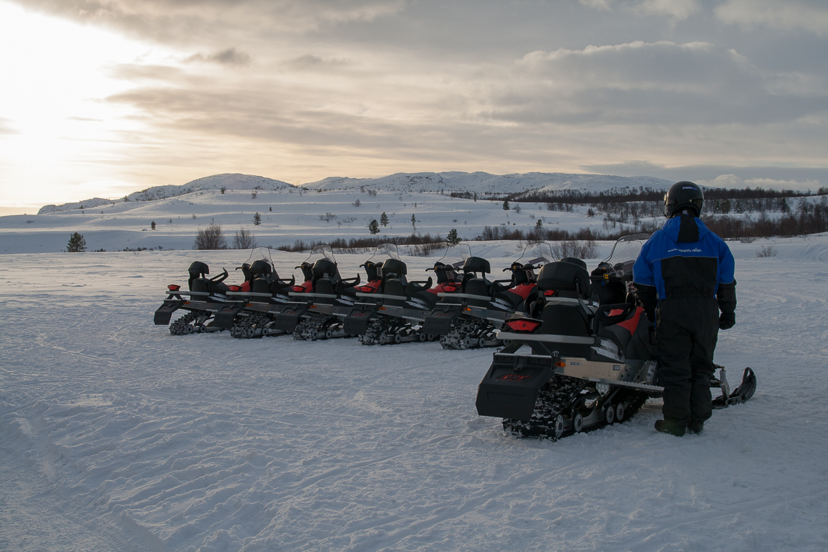 Im Camp hieß es dann erst einmal einkleiden. Meine Ausrüstung war zwar gut, aber der angebotene einteiliger Winterschneeanzug doch noch besser. Die Einweisung in das einfach zu bedienende Mobil war kurz. Es sind eigentlich nur drei Regeln zu beachten: