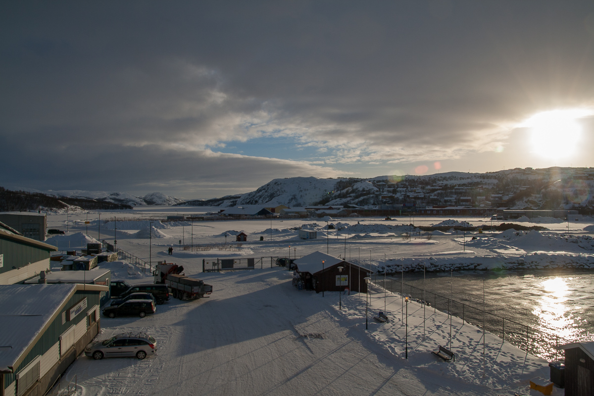 Heute musste ich früher aufstehen als sonst, denn wir haben schon von zu Hause als letzte der geplanten Aktion einen Ausflug mit Schneescooter in Kirkenes gebucht. Gut, eigentlich wollte ich Hundeschlitten fahren, aber ein Versehen bei der Bestellung hat dann zum Schneescooter geführt. Also, wie gesagt, früh aufgestanden und gefrühstückt. Ganz klassisch diesmal. Rührei, dazu eine norwegische Variante von Kotbülla und kleine schmackhafte Würstchen. Schließlich brauche ich heute ja Energie. Kaum fertig, hieß es „rinn in die Klammotten“. Wir sind hier im hohen Norden und dazu weit östlich, auf etwa gleicher Länge wie St. Petersburg und Istanbul. Da kann es schon mal richtig kalt werden.