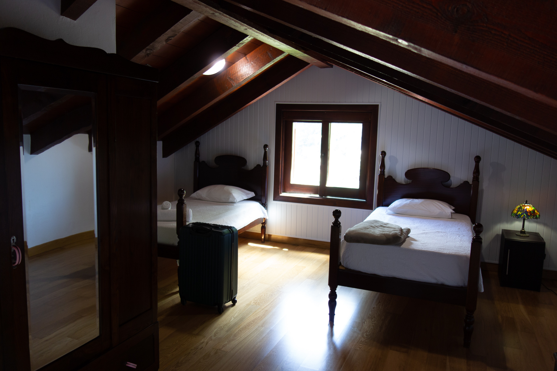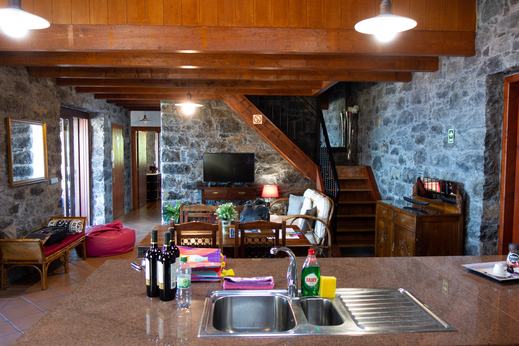 Nun aber zum Haus selbst. Als ich Anfang des Jahres bei der Suche nach einer Unterkunft die Bilder zu diesem Haus gesehen habe, hatte ich mich schon festgelegt. Meine bessere Hälfte ebenso. Und nun? Die Realität ist noch besser als gedacht. Aufgebaut aus Naturstein, der weder innen noch außen durch eine Putzschicht versteckt wird, angereichert mit viel Holz versprüht es einen Charme, dem man sich schwer entziehen kann. Ein großer Wohnbereich mit offener Küche und einem Schlafzimmer im Erdgeschoss, einem zweiten Schlafzimmer und einem Studio mit eigenem Balkon und zwei Betten im Obergeschoß können sich sehen lassen. So war unser erster Eindruck auch ein klares Wow!