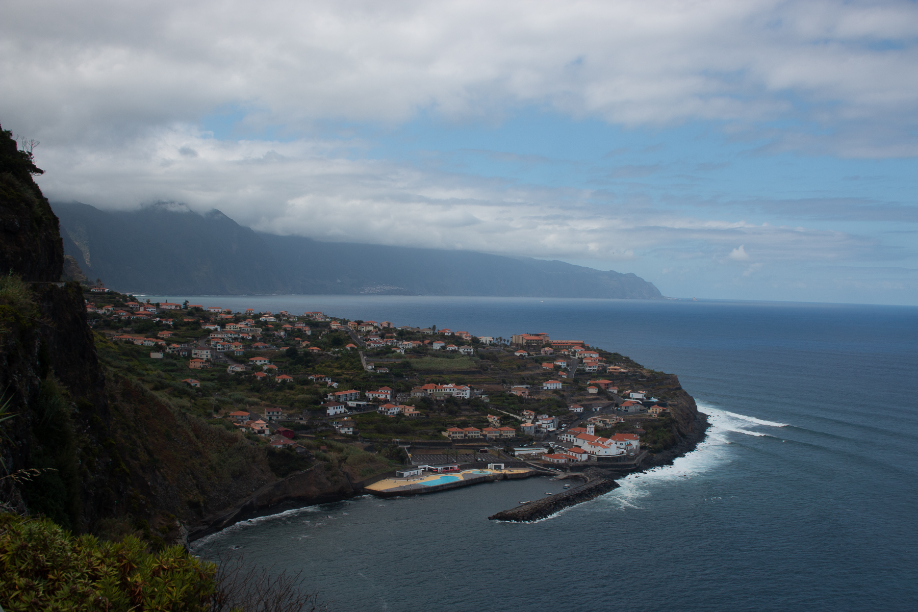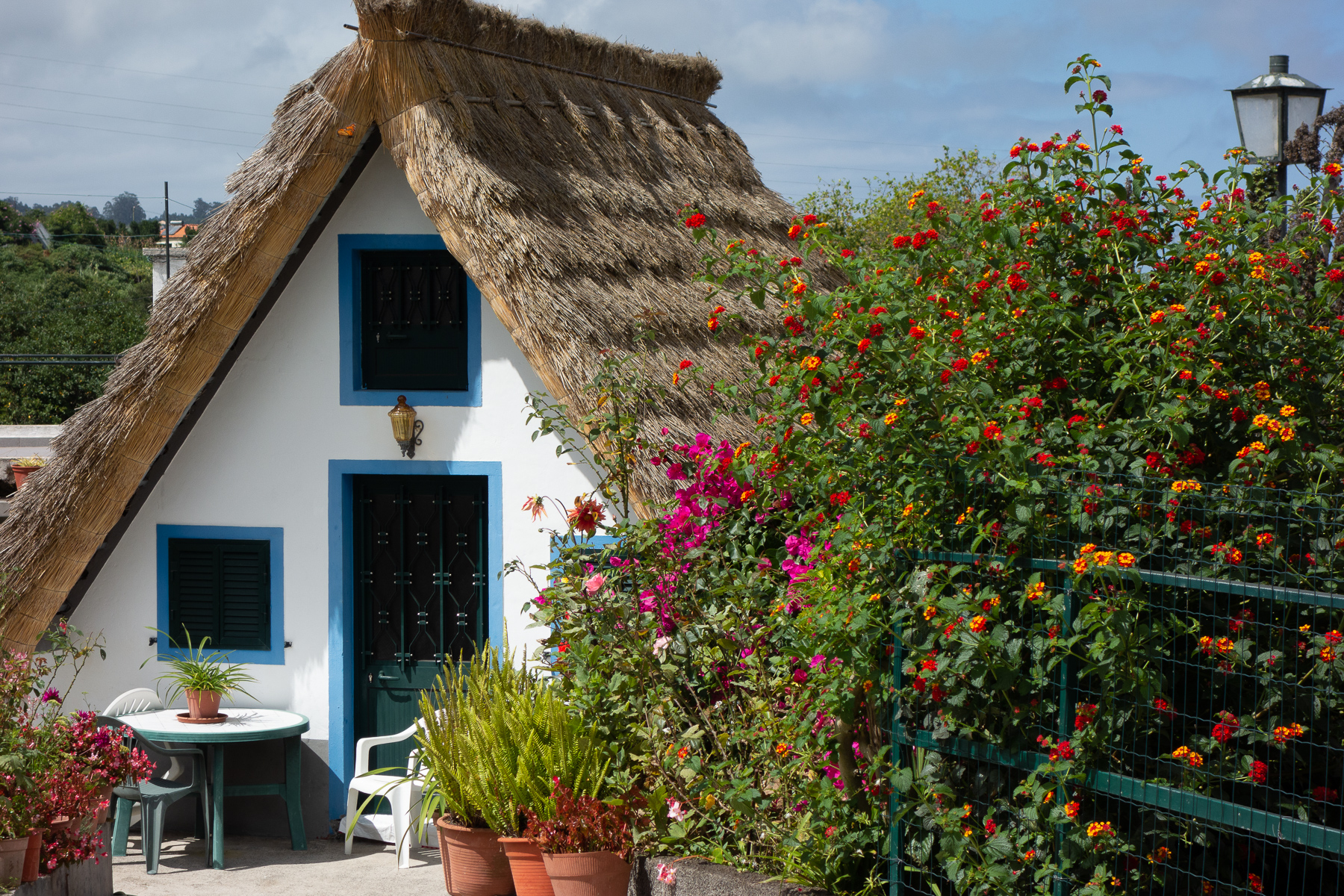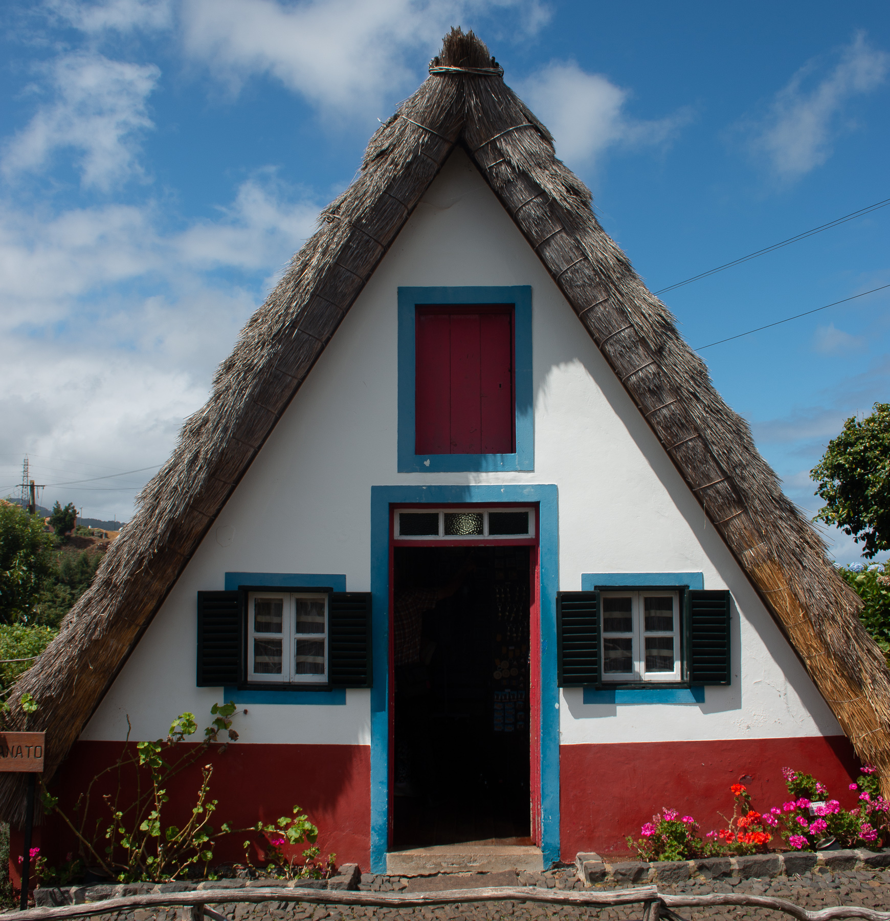 Mit einer guten Stunde Zeitverlust erreichten wir nach einer gewohnt kurvenreichen Achterbahnfahrt Santana, die bekannteste Stadt an Madeiras Nordküste. Insbesondere interessierten mich hier die casas de colma. Dabei handelt es sich um kleine, mit Stroh bedeckte Holzhäuser, die keltischen Ursprungs sind und teils heute noch bewohnt werden. In Santana und Umland gibt es noch gut 100 dieser farbenfrohen Häuser in mehr oder minder gutem Zustand. Wie gut, dass gleich im Zentrum einiger dieser Häusschen stehen und wir uns nicht erst auf die Suche machen mussten. Sie sind wirklich sehr klein. Im Erdgeschoss standen ein Bett sowie eine Sitz- und Waschgelegenheit. Im Obergeschoss wurden meist die Kinder untergebracht. Die mussten außen über eine Leiter hoch, denn eine Treppe gibt es nicht. Vom Charakter her ist solch ein Haus also eigentlich mehr ein Zelt, dass keine Heringe braucht. Aber früher brauchte es eben nicht mehr. Das Leben spielte sich, dank des Klimas auch kein Problem, mehr draußen ab.