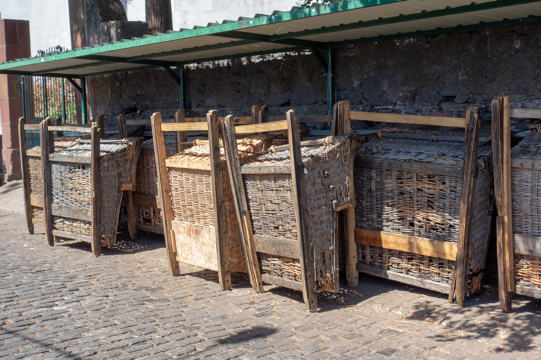 Am Fuße der Kirche warten die Lenker von Korbschlitten auf Kundschaft, eine eigene Zunft in weißer Tracht mit Strohhut. Die Schlitten werden auf ihren Kufen über zwei Kilometer die Straßen hinab und durch den Verkehr hindurch nach Livramento gelenkt. Eine Schlittenfahrt ohne Schnee also. Natürlich auch eine touristische Attraktion. Wie überhaupt alles hier oben in Monte. Dementsprechend viel war auch los, was wiederum nichts für uns war. So haben wir uns auf die Terasse eines vermeintlich ruhigeren Kaffees zurückgezogen und uns dort einen Kaffee mit Kuchen und natürlich reichlich Wasser gegönnt. Hier auf der Südseite der Insel ist es eben deutlich heißer als in dem von uns bewohnten Abschnitt.