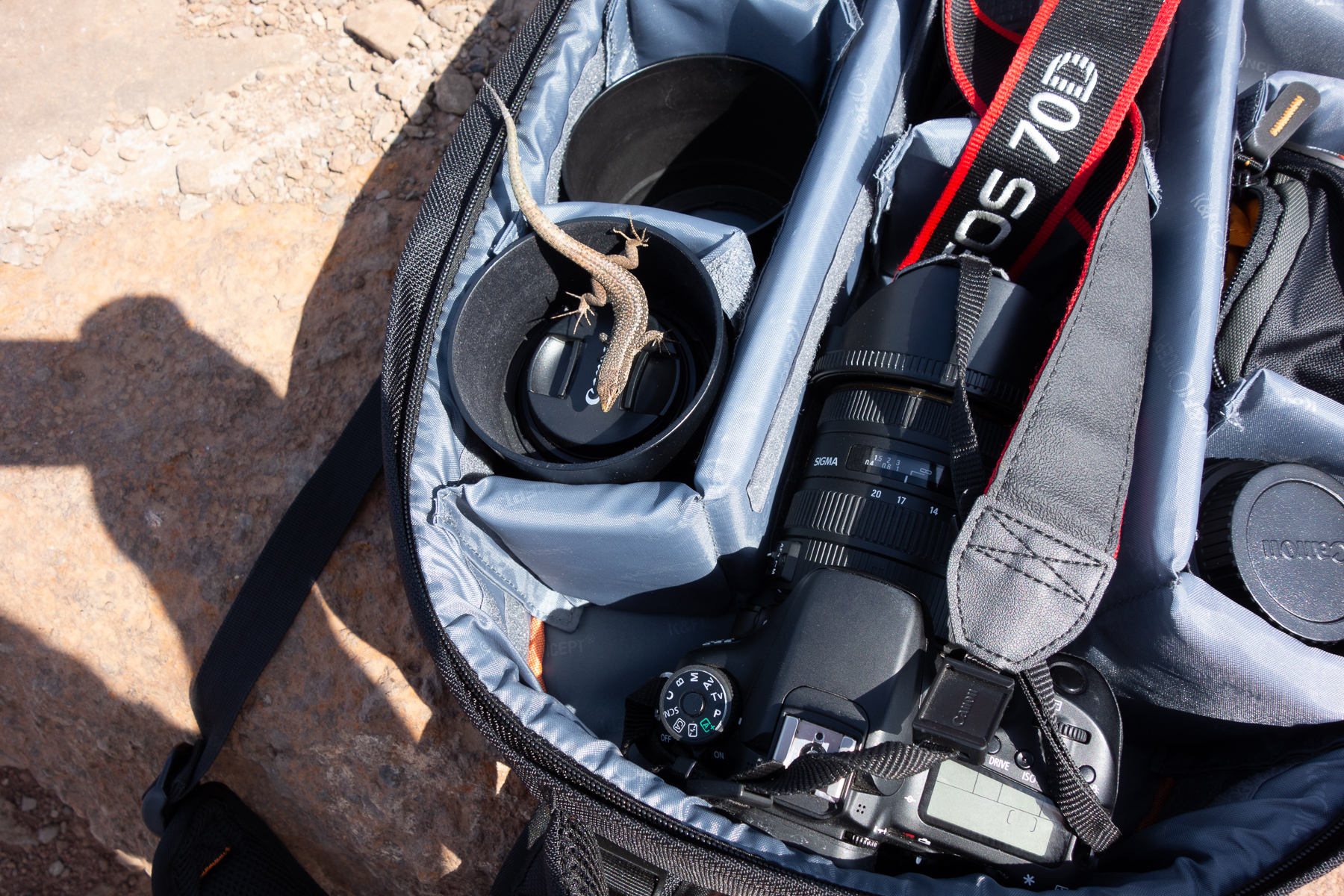 An den vielen Aussichtspunkten konnte man erkennen, dass dieser Weg von sehr vielen Touristen begangen wird. Nicht etwa am Müll, es war für die Verhältnisse erstaulich sauber hier, sondern an den Mauerechsen. Diese Spezies ist überall auf Madeira vertreten und eher scheu. Nähert man sich ihnen, huschen sie wie der Blitz von dannen. Nicht so hier. Kaum hatte ich meinen Fotorucksack abgelegt, kamen einige dieser Gesellen und inspizierten neugierig den Inhalt. Vielleicht gab es ja was fressbares? Nein, gab es nicht. Trotzdem war es nicht einfach, die Echsen davon zu überzeugen, dass sie in dem Rucksack nichts zu suchen hatten. Von Scheu nicht die geringste Spur.