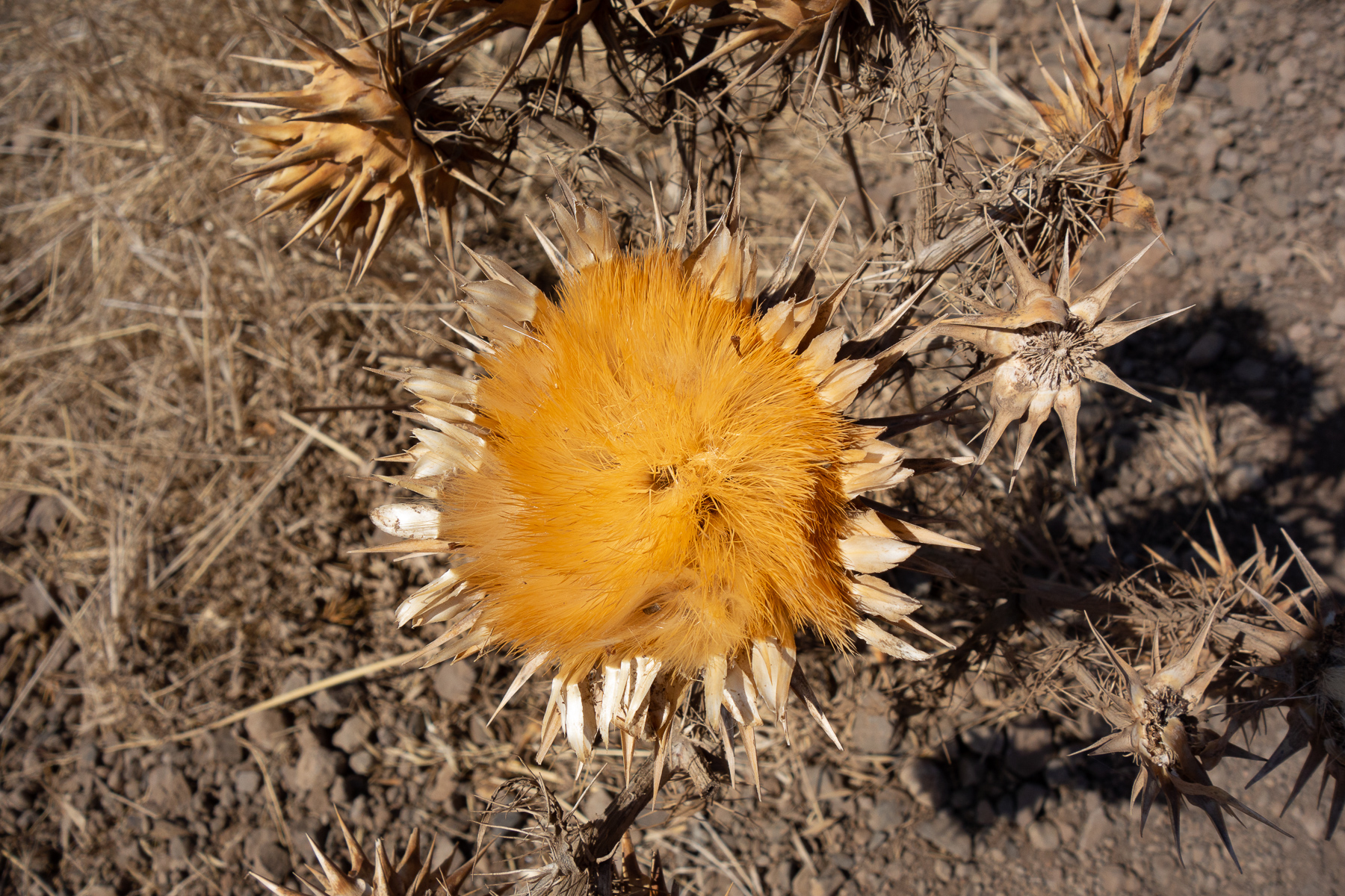 Der Rückweg zum Auto war dann weniger spektakulär als anstrengend. Natürlich war es wieder ein ständiges auf und ab. Mit einigen aus Neugier eingelegten Umwegen kam ich am Ende auf eine Strecke von 8,6 km und 413 Höhenmeter. Am Auto erwartete mich Andrea mit frischem Wasser und Obst. Wie schön, denn das mitgenommene war vollends aufgebraucht! Sie selbst war nach eigener Aussage noch gar nicht so lange zurrück und hatte sich an einem Verkaufswagen erst einmal mit Getränken versorgt und in den Schatten einer Palme gesetzt.