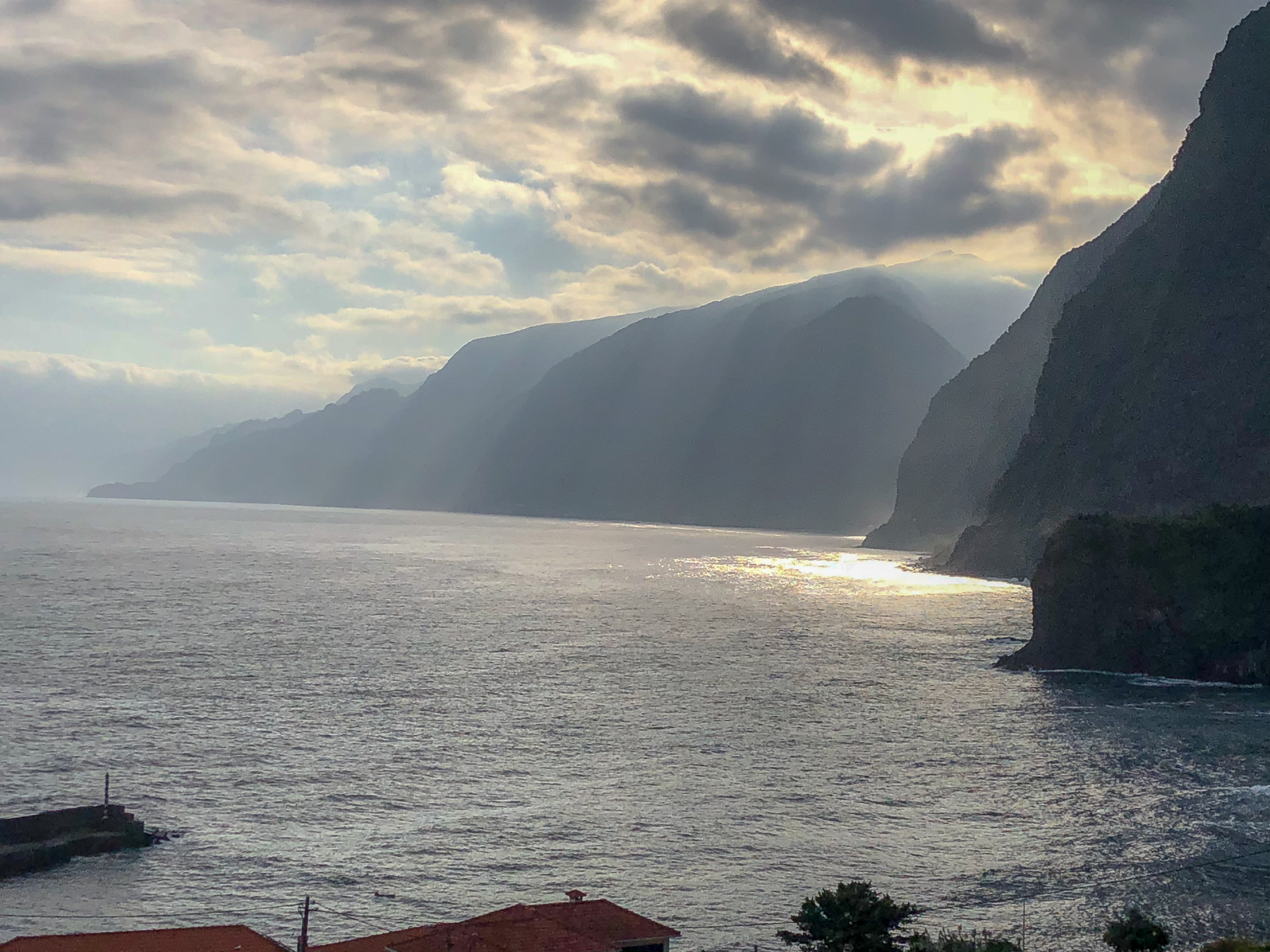 Auf der Rückfahrt haben wir uns dann für den Weg über die Landstraßen nach Santana, São Jorge und Seixal entschieden. So haben wir schließlich auch den östlichen Teil Madeiras komplett umfahren. Natürlich war die Landstraße wieder ein Abenteuer und wand sich in engen Kurven auf die hier nun wieder vorhandenen schwindelnden Höhen. Und natürlich war das Stück ab Santana das nun schon mehrfach erwähnte Lieblingsstück an Straßen auf Madeira. Selbst das Auto kannte diesen Abschnitt schon so gut, dass es die Strecke fast alleine gefahren ist.
