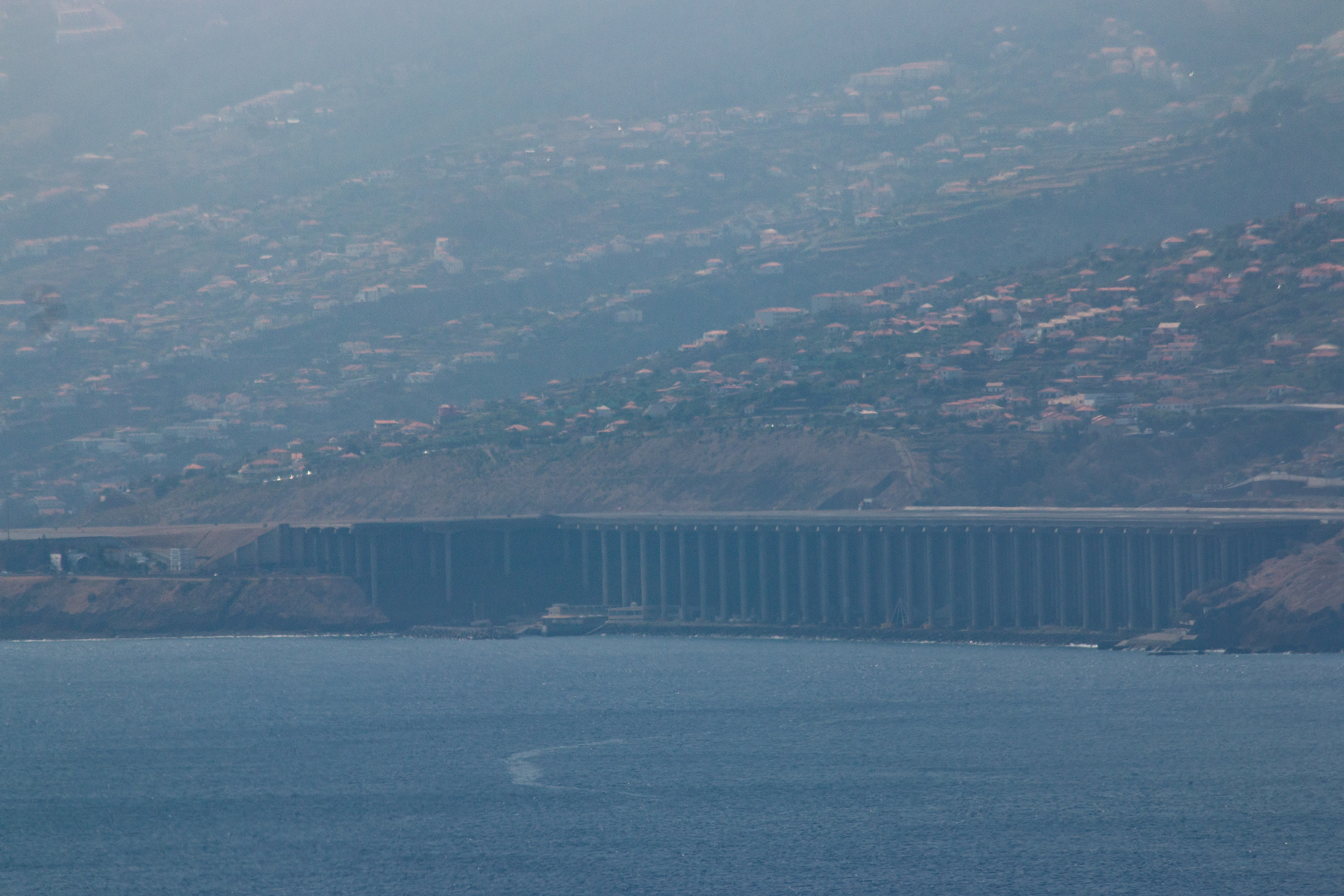 Auf dem Weg dorhin, diesmal über die Schnellstraßen Richtung Funchal und Flughafen, unterquerten wir die anfnags der Artikelserie bereits erwähnte auf unzählige Stelzen erbaute Start- und Landebahn des Flughafens. Leider nimmt man auch auf Madeira das Parken auf der rechten Spur einer Schnellstraße zwecks Fotoshooting recht übel. Da ich mir nicht den Zorn der Einheimschen und der vielen Touristen zuziehen wollte, habe ich notgedrungen auf das Fotografieren dieses Bauwerks verzichtet. Der Versuch, es dann doch noch vom Gipfel des Berges unseres Wanderziels ins Korn zu nehmen, war von zweifelhaftem Erfolg gekrönt.