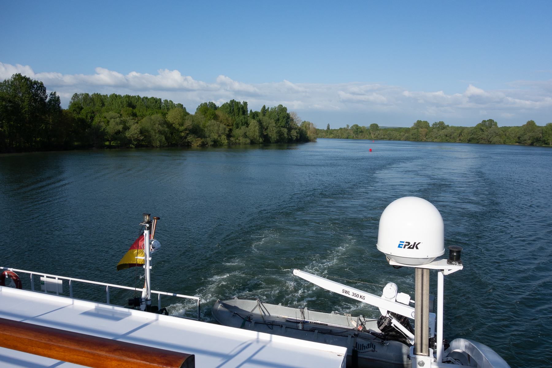 Landschaftlich war es übrigens recht schön. Eine Landschaft ähnlich dem Rhein auf Höhe des Siebengebirges. Nur das es auf beiden Seiten des Flusses sehr grün war. Natürlich fehlten auch die Burgen und Schlösschen. Dafür gab es aber viel mehr Inseln, die mal Backbord, mal Steuerbord passiert werden mussten. Dadurch erscheint die Seine oft nicht so breit wie der Rhein, was aber ein Trugschluss ist und spätestens dann auffällt, wenn mal keine Insel den Blick von Ufer zu Ufer behindert.