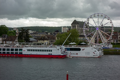 Heute ist dann wieder ein besonderer Tag. Zum einen hat meine Liebste Geburtstag und zum anderen liegen wir nun vor dem verschlafenen Nest Vernon und das Wetter hat sich zumindest so weit gebessert, dass es mal nicht regnet. Also sind wir nach einem Glässchen Sekt zur Feier des Tages und einem ausgedehnten Frühstück wieder in die Wanderstiefel geschlüpft, um Vernon auf eigene Faust zu erkunden. Eine Mühle und ein Chateau in unmittelbarer Nähe und ein weiteres Chateau ca. 40 Minuten Fußweg entfernt weckten unsere Neugier. Mehr jedenfalls als das unmittelbar am Liegeplatz stehende Riesenrad, dass hier irgendwie nicht hinzugehören scheint.