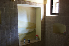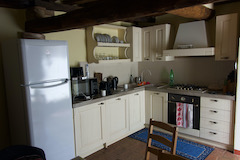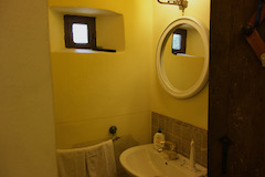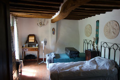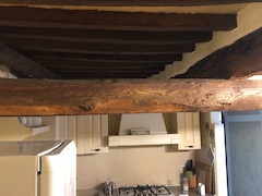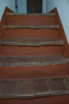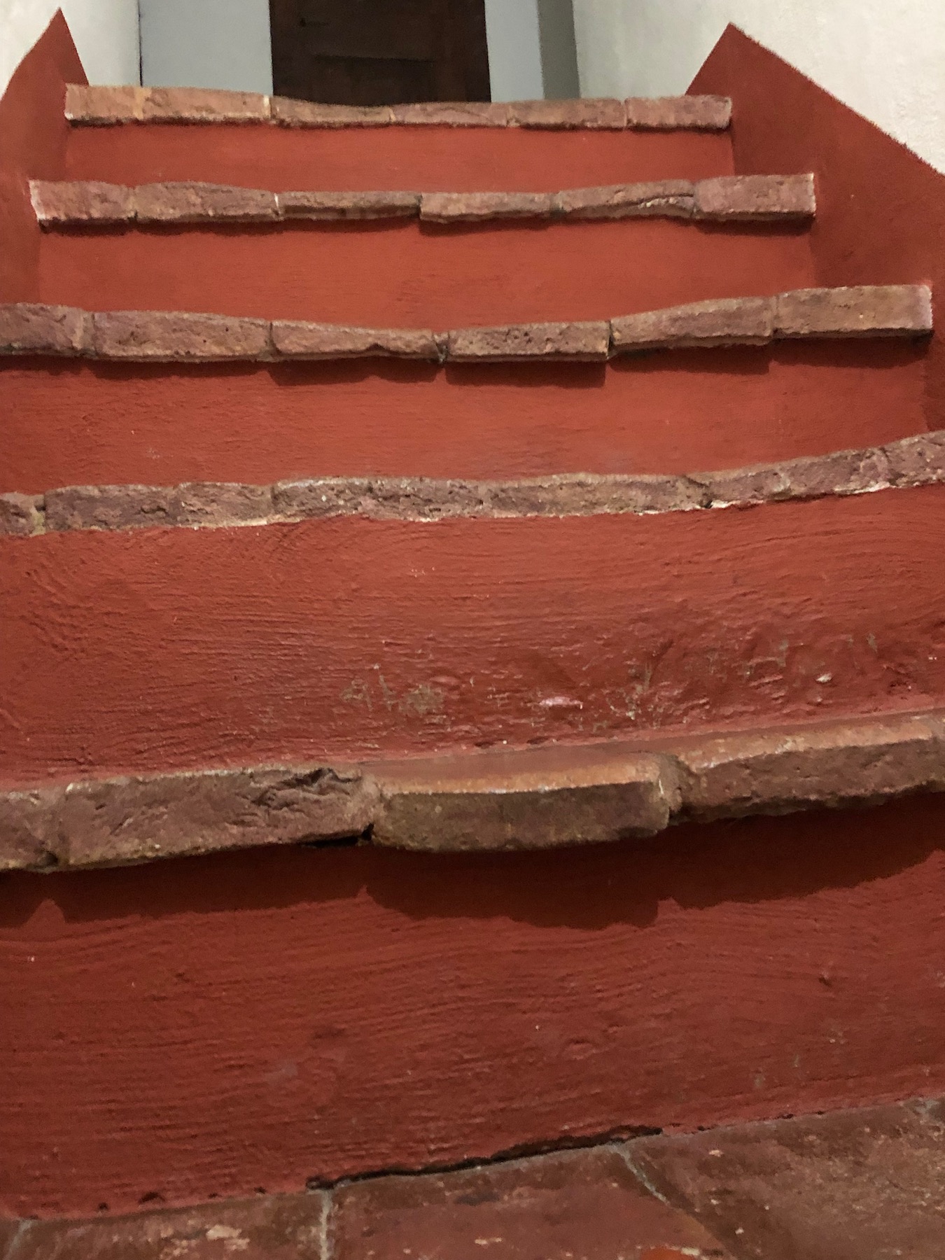 Das Haus selbst ist schon sehr speziell. Eine alte Wassermühle eben. Dicke Mauern, kleine Fenster, jede Menge Balken an der Decke und eine Treppe nach oben, die ihresgleichen sucht. Wir sind es aber zufrieden. Die dicken Mauern halten tagsüber die Hitze draußen während sie Abends das Haus wärmen. Und ansonsten ist alles da, was wir zum Leben brauchen.