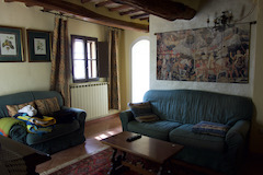 Am nächsten Morgen ging es dann auch direkt weiter nach Montereggione. Wieder waren die Straßen voll und wieder dauerte es länger als gedacht, bis wir angekommen sind. Aber wir haben es geschafft! Wenn auch erst im zweiten Versuch. Die Adresse im Navi führte uns in den kleinen Ortskern eines Vororts von Montereggione. Dort war aber von unserem Domiziel wenig zu sehen. Wie gut, dass die Vermieter meineer LIebsten noch kurz zuvor die GPS-Koordinaten geschickt haben. In Italien nicht unüblich gibt es die Adresse gleich zwei mal! Wir waren schon daran vorbei gefahren. Eine versteckte Einfahrt mitten im Nirgendwo. Mit Hilfe der GPS-Koordinaten war es dann ein Leichtes, unsere Wassermühle zu finden.