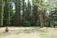 Insbesondere der Außenbereich hat es uns angetan. Eine weite Wiese mit Schatten spendenden