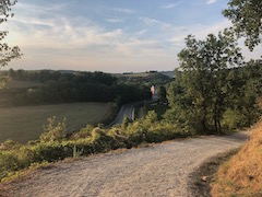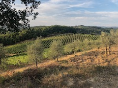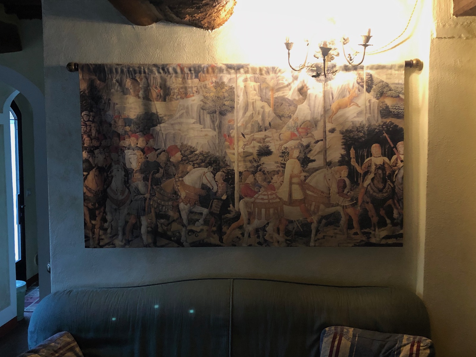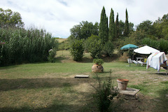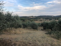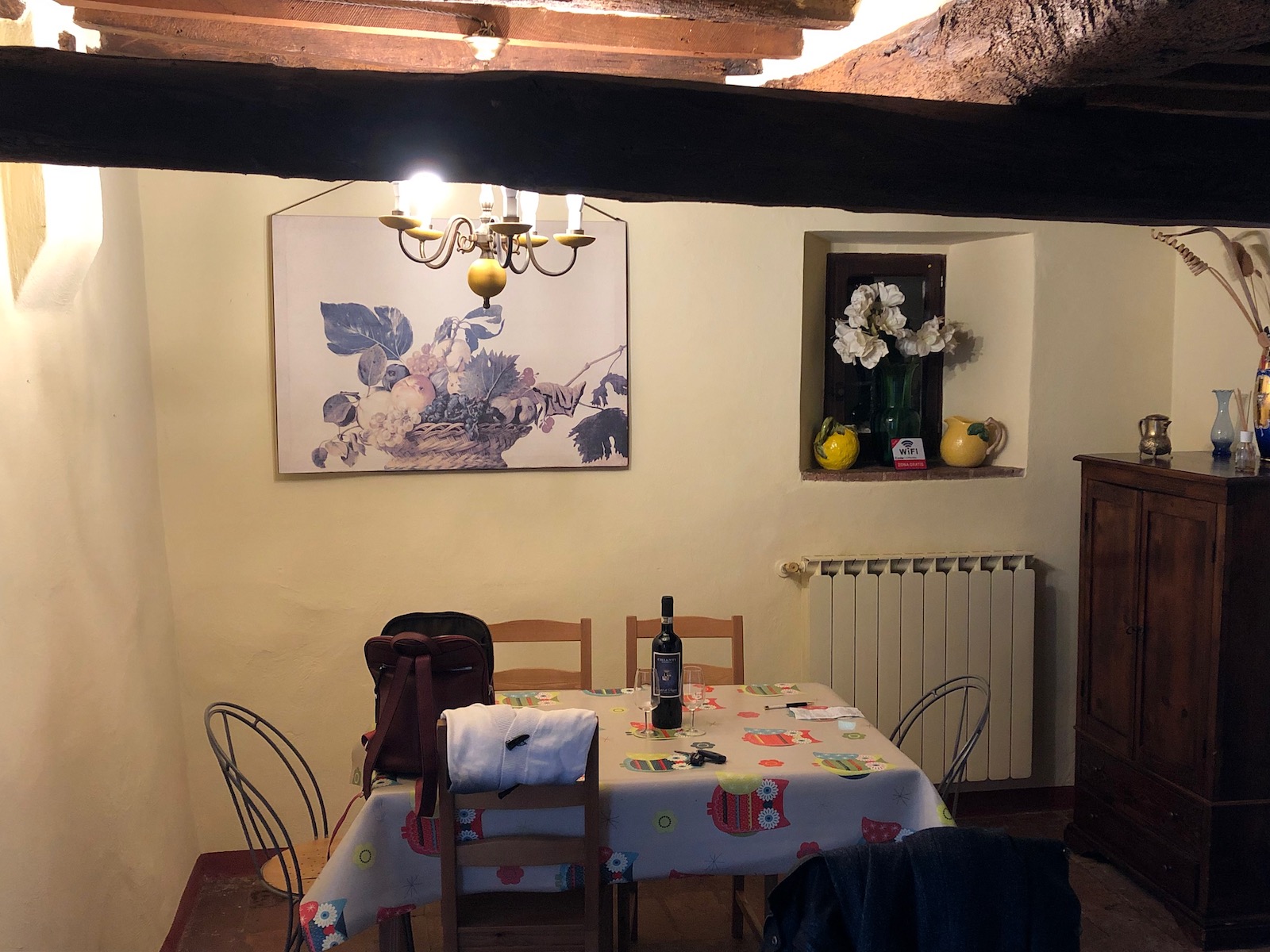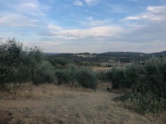 Sonntag waren wir in einem typischen Retaurant im Ort essen - ging so. Nicht wirklich erwähnenswert. Heute aber waren wir im Castello auf dem Hügel essen. Grandios! Die Vorspeise war eine bunte Vorspeisenplatte aus der Region plus Bruschetta mit Tomaten und rohem Schinken. Der Hauptgang bestand aus Pici al Cinghiale und Spaghetti Vongole. Picis sind dicke Spaghetti, die mit dem Wildschwein (Cinghiale) hervorragend harmonierten. Im Nachgang gönnten wir uns noch jeweils ein Stück Kuchen aus einer Sahnecreme mit kleinen Feigenstückchen und reichlich Walnüssen. Dazu gab es einen Dessertwein. Nach einem Café Italiano (und einem leider fürchterlichen Grappa) zum Abschluss konnten wir den Hügel nur noch herunterrollen.