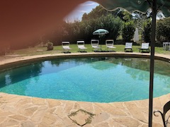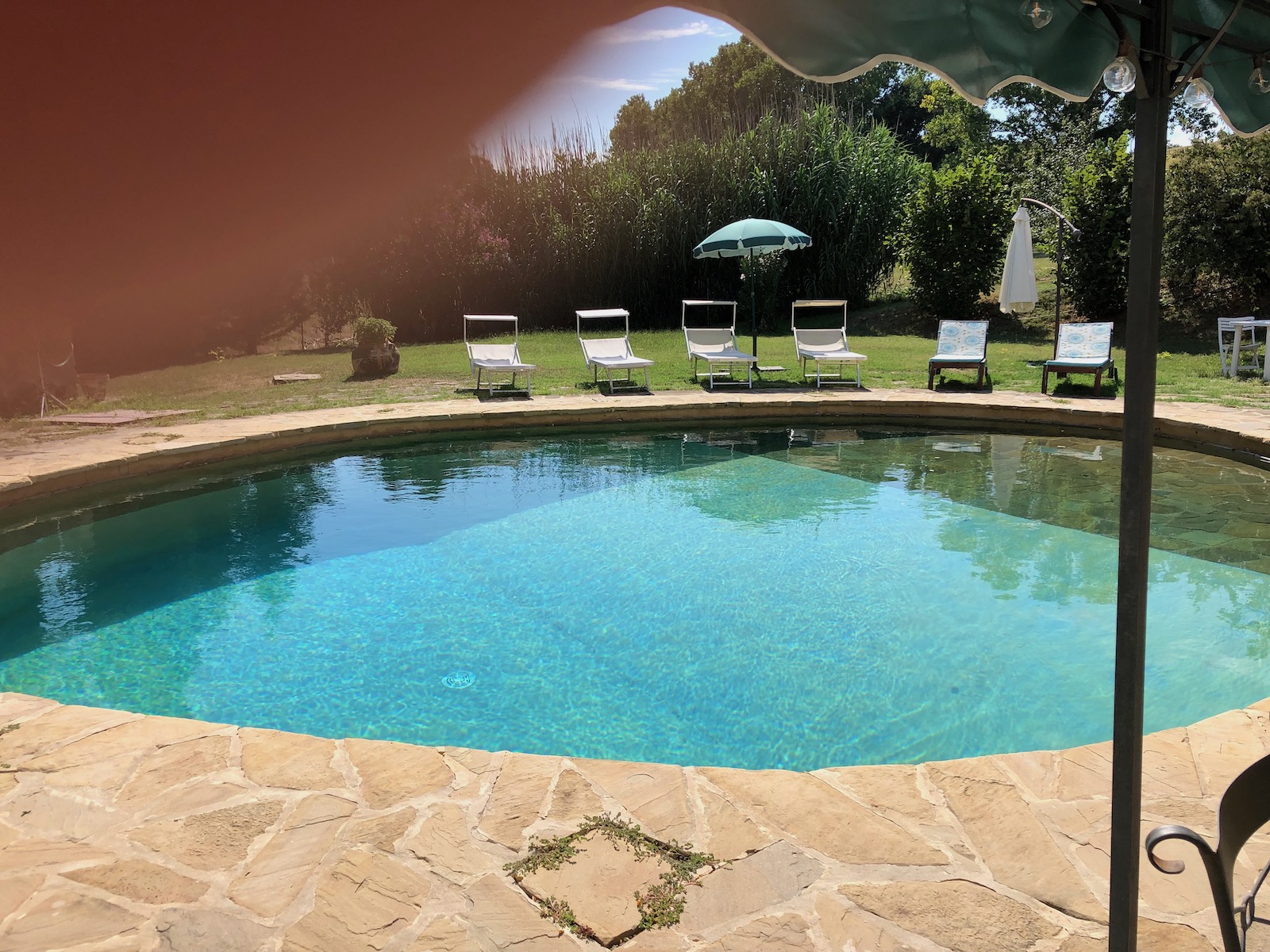 Bäumen und ums Haus ein Swimmingpool, in dem man richtig schwimmen kann. Die meiste Zeit