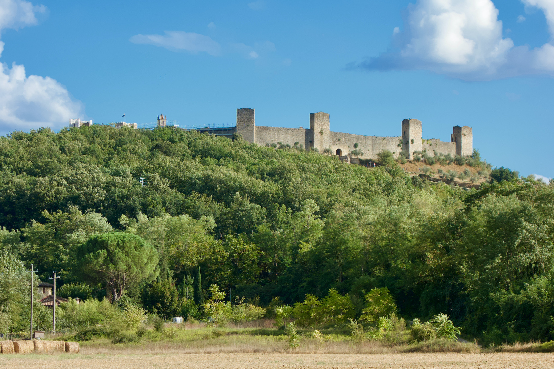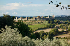 Von der Wanderungen selbst gibt es nicht viel zu berichten. Die Landschaft unterscheidet sich nicht sehr von der in unserer bergischen Heimat. Viel Felder und Wald. Und so ging es denn auch über staubige Wege durch die Felder und Wälder der Toscana. Bergauf, bergab, bis schließlich das Castello von Monteriggioni vor uns lag und wir einkehren konnten. Nach dieser Anstrengung war ein Vier-Gänge-Menü genau das Richtige, um den Tag ausklingen zu lassen.