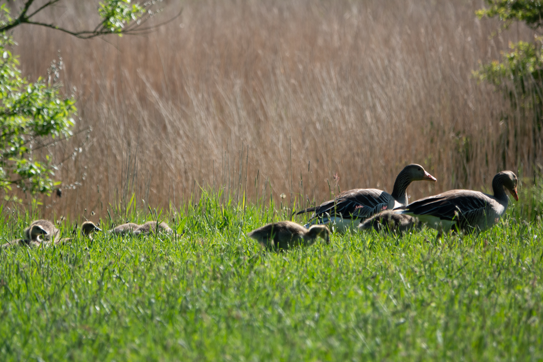 Neben den Wintergästen und Durchreisenden wie Weißwangengans und Ringelgans sind Graugänse weit