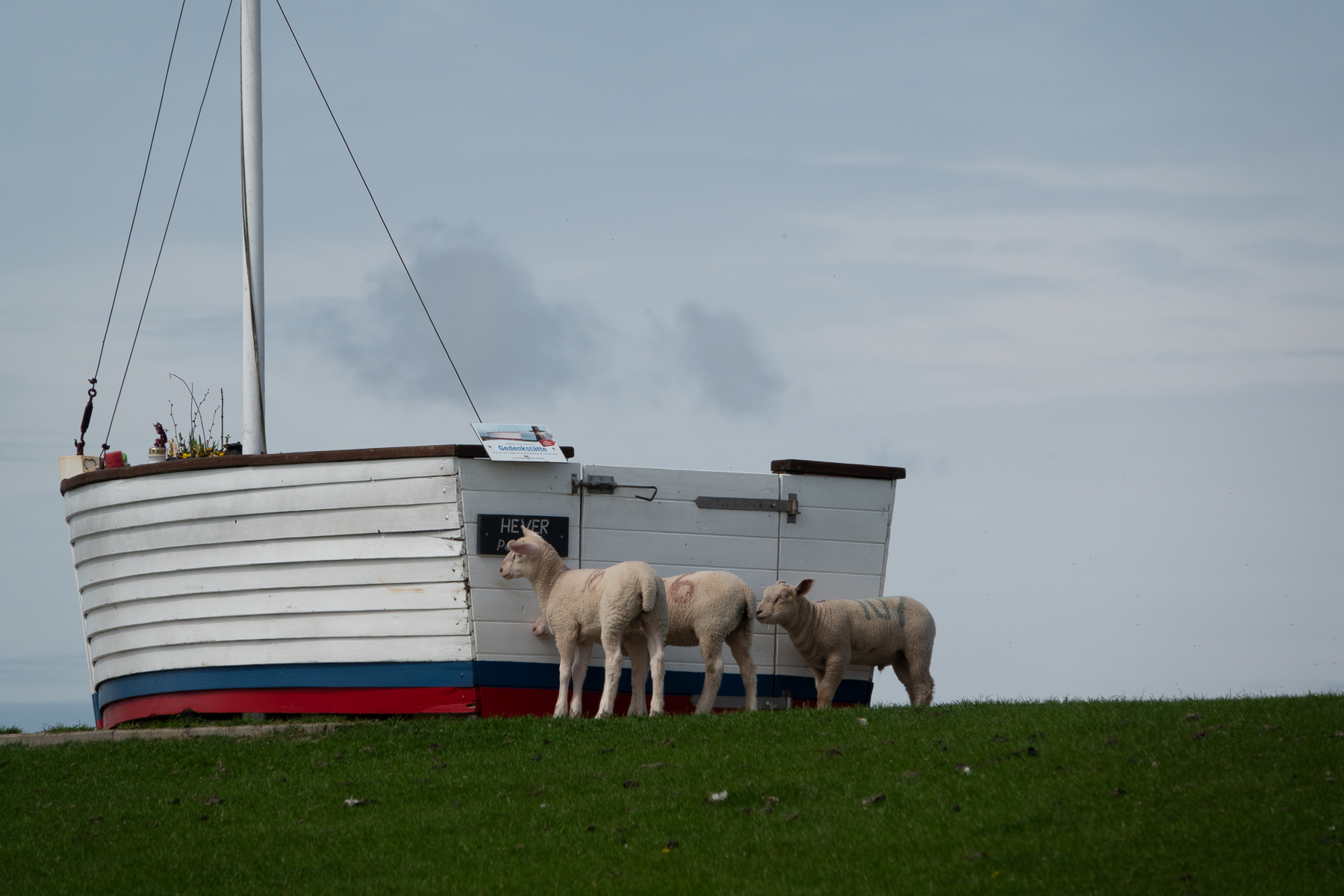 dem Deich lang. Neben den Deichschafen können wir Rauchschwalben, Austernfischer, unzählige Gänse und