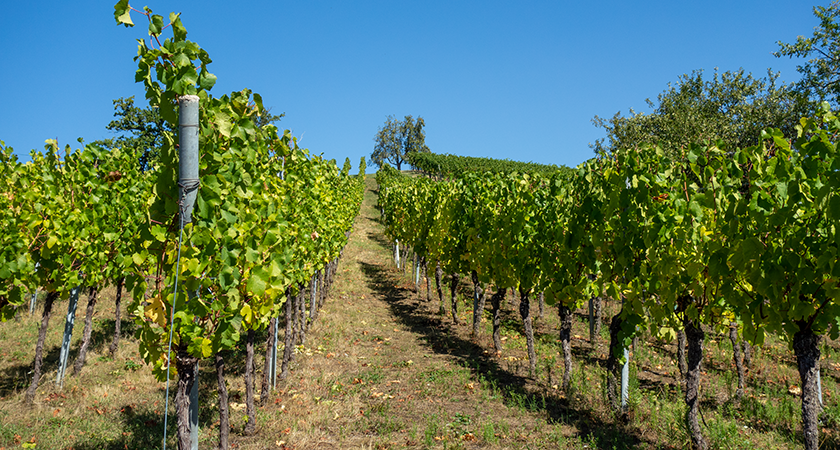 uns ein klein wenig durch das waldige und von Weinbergen durchsetzte