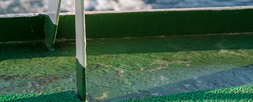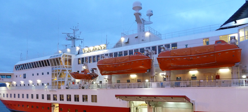 Seit gestern sind wir also wieder auf dem Rückweg. Die Nacht war begleitet von einem ständigen Auf und Ab des Schiffs. Die Stabilisatoren verhindern zwar die Rollbewegung, aber gegen das Stampfen gibt es kein Hilfsmittel. Macht nix, ich find’s prima. Einmal war sogar für kurze Zeit vom Heck aus das Nordlicht zu sehen.